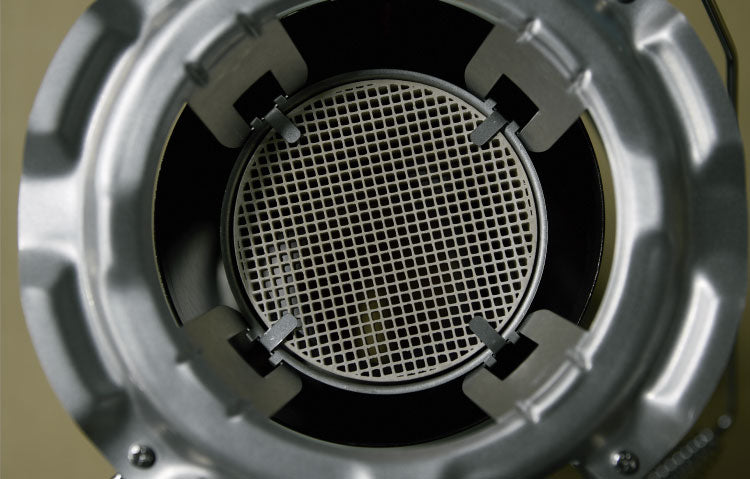 燃焼中はもちろん、点火・消火時のいやなニオイを感じさせません。そのわけは着火と同時に素早くブルーの炎で燃焼するため、未燃焼ガス(ニオイ)の発生が起こりにくいからです。また、燃焼時のしん及び、その周辺の温度が低いので、消火時間が短く、未燃焼ガス(ニオイ)が発生しにくくなっています。