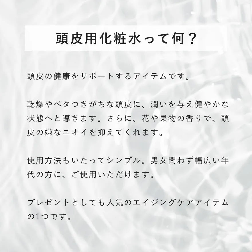 お肌ケアの当たり前を頭皮ケアにも、水分を補給し健やかな頭皮へ。