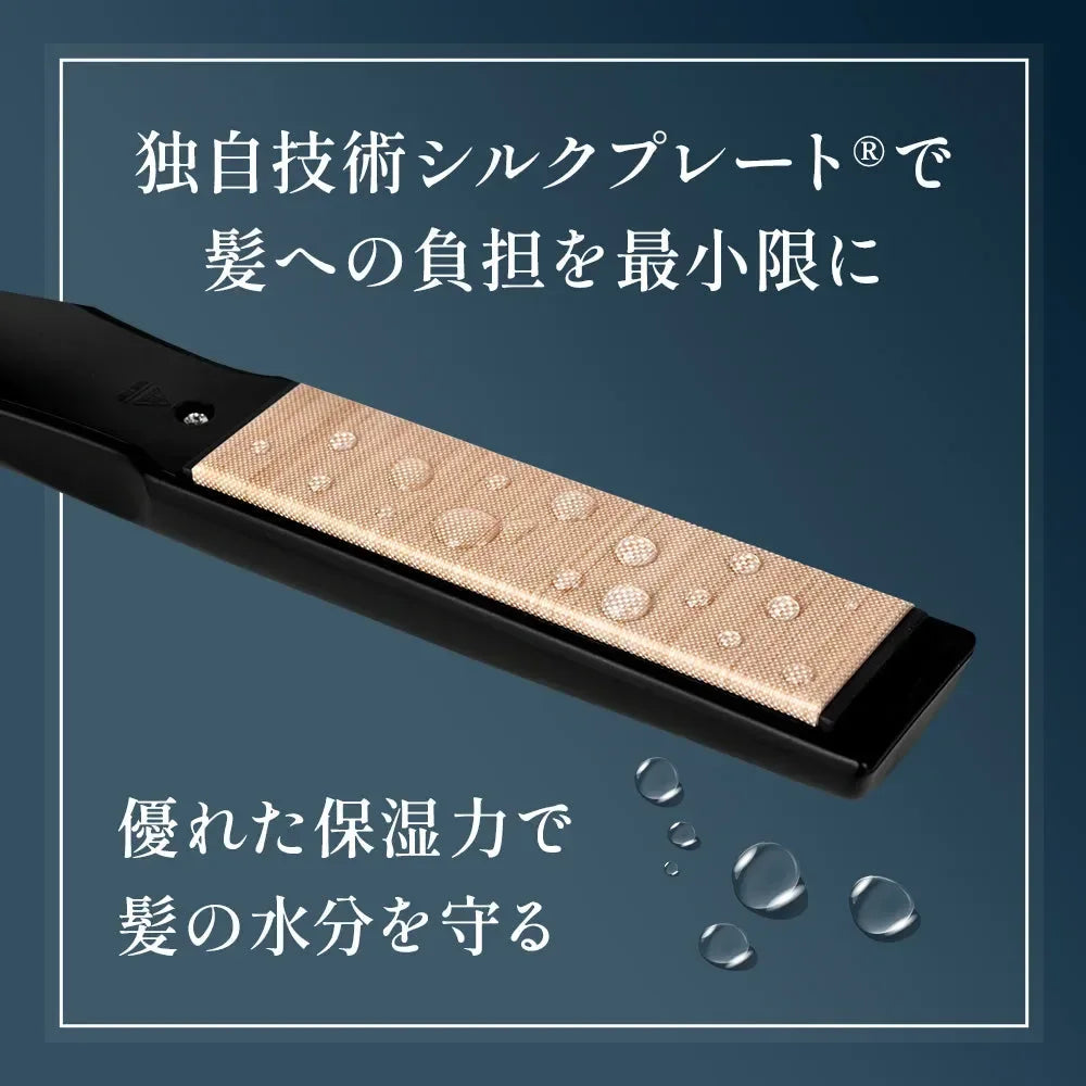シルクプレートを採用する事で、まるで絹のような髪通りの良さを実現。 更に、200℃でも「水蒸気爆発」が起こらない優れた保湿力を持っています。