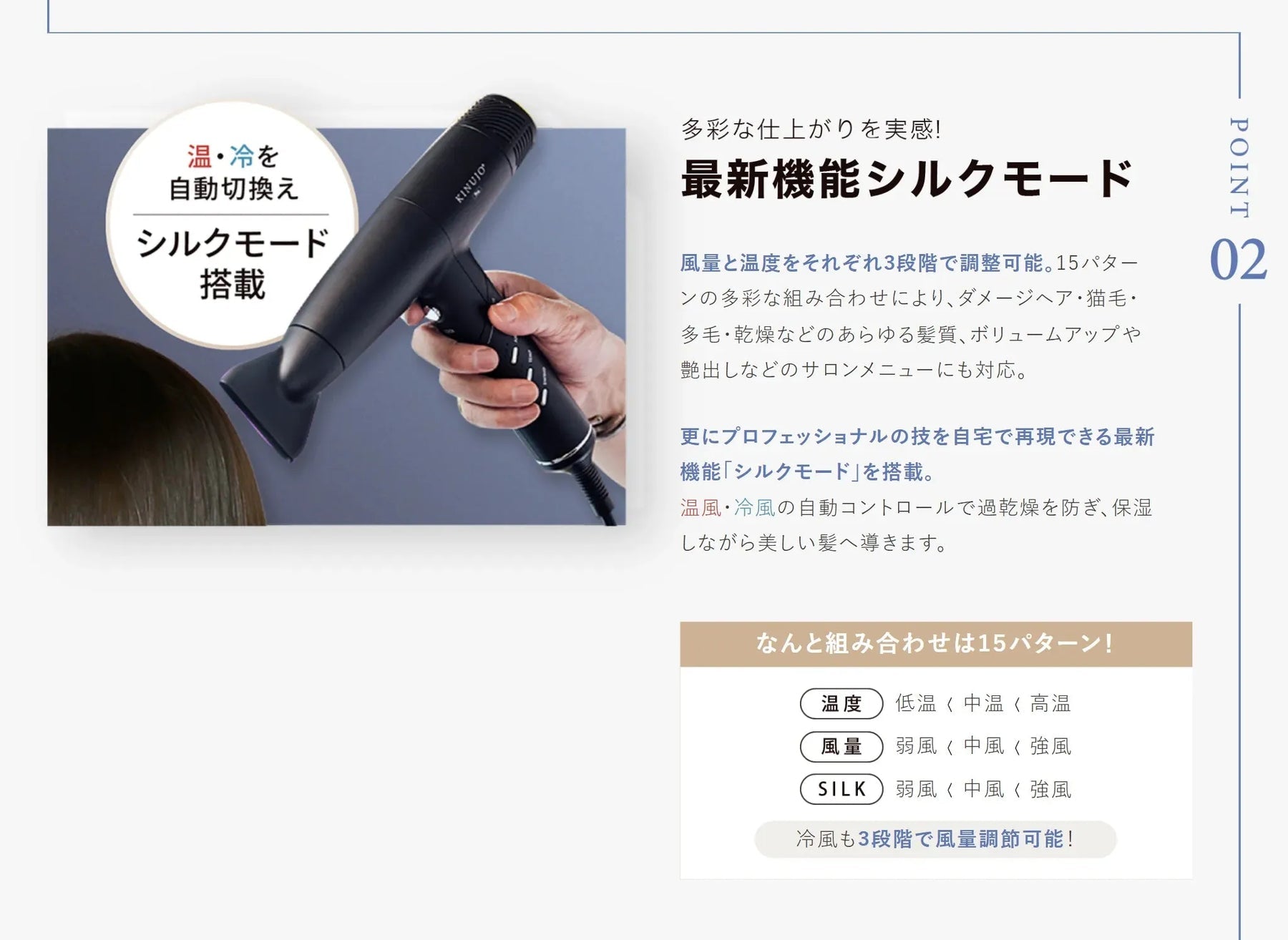最新機能「シルクモード」で速乾を叶えながら潤うツヤ髪を実現します。