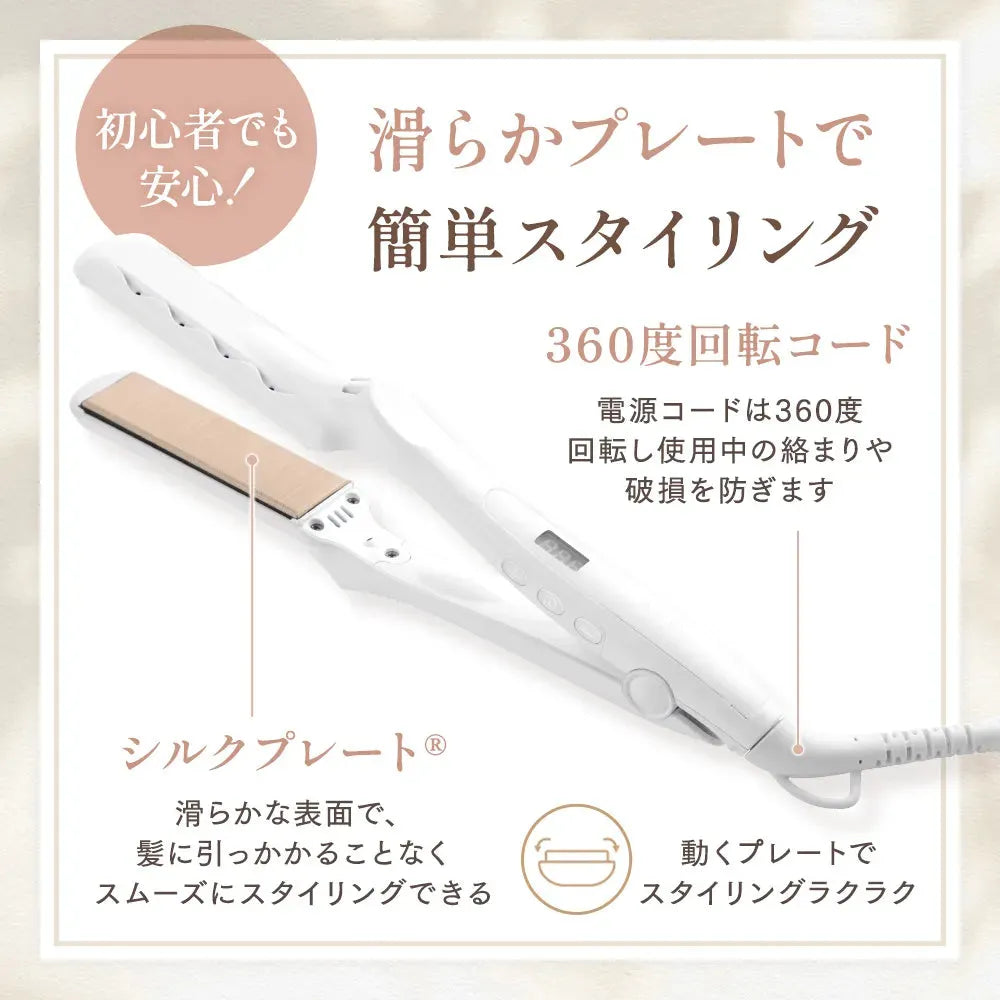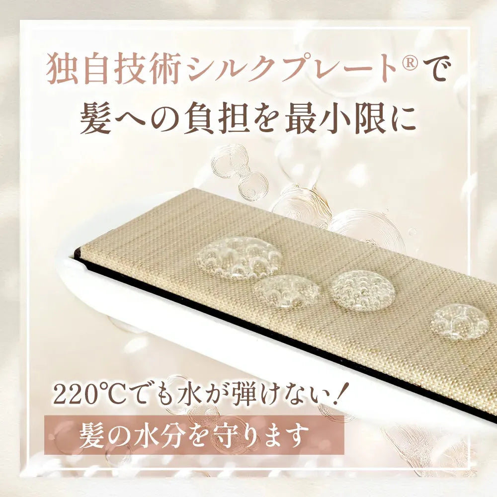 ヘアアイロンの新常識”シルクプレートを採用した究極のストレートアイロン。特殊な素材から作られたシルクプレートは、髪へのダメージを最小限に抑えます。