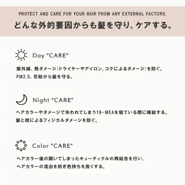 どんな外的要因からも髪を守り、ケアする。